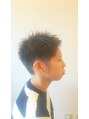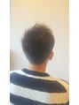 ハチしたは短めに刈り上げ、サイドは角をのこし、トップを長さを残したトレンド感のばっちしのスクウェアソフモヒ。