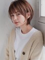 <カット>ベースはやや前下がりのボブベースです。重くなりすぎないように表面に軽くローレイヤーを入れ動きをだします。前髪は流して目にかからないぐらいの長さに設定しています。<カラー>10トーンのウォームベージュです。