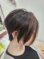 全体的にレイヤーでくしゅっとラフな動きを出して、ハイトーンカラーで透明感と柔らかさをオン。ショートバングで可愛らしさをプラスした大人ふんわりなショートボブスタイル。