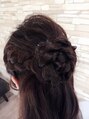 バックにお花♪ダークヘアで大人色気たっぷりヘアアレンジ/ホットペッパービューティー