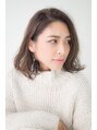 <カット>前下がり鎖骨ラインのミディアムベースです。全体的に量感を減らし、前髪は長めに残しサイドに繋げます。<カラー>全体に12トーンのハイライトを入れ、その後10トーンのミルクティーベージュを入れます。