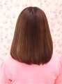 ワンレンベースのローレイヤーで重めにットして、前髪はAKBっぽく重めに下ろし流し。 カラーリングは、ピンクブラウンでつやっつやに!! ブローで内巻きに仕上げました。