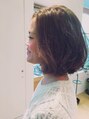 シンプルなボブスタイル。柔らかい髪の彼女にぴったりのヘアスタイルです。