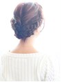 サイドから編み込みで繋げていく人気のヘアアレンジです♪下にボリューム感が欲しい方や、ふわっとしたイメージでセットされたい方にオススメです!結婚式以外のパーティなど、様々なシチュエーションで使いやすいアレンジです!