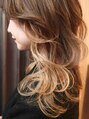 長めのレイヤースタイルで、あくまで全体の毛先の印象は重めに。ウェーブを巻くと、ふわっとエアリー感の出るようにカットしています。前髪、顔まわりは長めのラウンドで70年代のジェーン・バーキンのように。