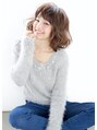 ドレードボブをベースにカットして、全体にスクエアレイヤーを入れて計算された空気感を。サイドからバックに行くにつれて徐々にグラデーションを入れていきます。パーマはまとまりのあるランダムカールでカラーはシナモンベージュにオリジナル色をMIX!