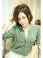 シンプルなボブスタイルを分け目と耳かけで華やかな雰囲気に♪