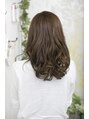 カラーは、マッド系ベージュカラー。赤味を抑えつつふんわり軽い印象を作りました♪カットは重軽な雰囲気を出すために、全体的には重めのレイヤーで、逆に顔周りだけに動きを出す毛束を作って巻き髪で簡単にふんわりした印象を再現できるようにしました♪