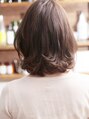 今季注目のロブ スタイルにセンターパートとパーマで上品な雰囲気を演出しました。 分け目によって雰囲気を変えられるから飽きやすいおしゃれさんにもオススメ。 カラーはロートーンのベージュブラウンで柔らかさを。