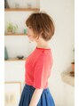マッシュラインでカットし、トップは頭の丸さを意識しレイヤーをつなげました。全体的にゆるい内巻きにして、大人のマッシュルームショートにしました。