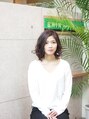 鎖骨位の長さのレイヤーボブに耳下の位置からランダムにパーマをかけてツヤ感を失わず上品なカールに。カラーは7トーンのブラウン系で自然な印象に