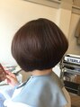 カットは重めのボブに戻す過程です。。。髪型自体は、前回のグラデーションは変えずにアウトラインをカットして揃えた感じです。。。カラーは、ショコラブラウンの7トーンです。単純に伝えると。どこから見ても綺麗な髪型です。朝も簡単。。仕上げです。。。