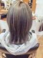 今冬流行中のハイライトメッシュカラーです。ベースカラーは大人気グレージュベースにプラチナシルバー系ハイライトが入っています。