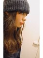 無造作な前髪がポイントのニットキャップロングスタイルです!パールアッシュで透明感を。緩めのウエーブで柔らかく。
