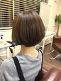ラウンド状に丸いフォルムのボブです!バックから前下がりにレイヤーを入れ、後頭部にボリュームを持たせた骨格修正スタイルです!頭の形がキレイに、小さく見えます!