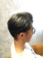 サイドは、ツーブロックでボリュームを抑え、TOPは長めに残して、手櫛でかき上げるようにスタイリング