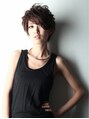 カラーはアッシュの9トーン。アシンメトリーなバングにして、ウェーブパーマを入れてます。wax、ムースを使ってから、片方からドライヤーをあてて、わざと乱れた感じしても、かっこいいと思います。