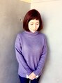 - 伸ばしかけのボブスタイルを短めフロントで個性的な印象に。カラーは10トーンのレッドブラウンで艶感UP