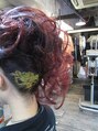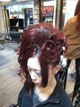 ワインレッド右寄せ盛髪セット。ポイントグラフィティーヘアー。