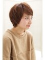 似合わせカットでバランスを考えて作ったマッシュベースの大人かわいいショートです♪ベージュカラーで柔らかさをだし、ストレートに近い自然な毛先のワンカールで短めショートでもフェミニンな印象に!