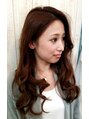 耳上ぐらいから、MIX巻きをしてほぐしながらくずした大人スタイルです。カラーは落ち着いた雰囲気の少し赤味をいれたブラウン系です。