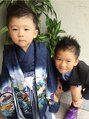 ご家族みなさんでご来店いただきました♪お母さん編み込みセット(担当:MAIKA)&着物着付け、七五三の息子さん着付けもしました!兄弟&パパのカット(担当:神徳)