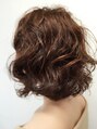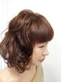 前髪が 個性的な パーマスタイルです。ドライで巻き髪風に アレンジしました♪