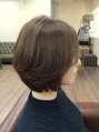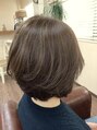グレージュ系のカラーでふんわり感のあるボブです!赤味を抑えているので透明感があり、暗めでも重たく見えず軽い印象になります!