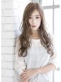 ゆるく揺れるカールの重なりと、ブリーチハイライトの効果で、透けるような柔らかさを演出。かき上げバングでエアリー感の中に色気を感じさせて