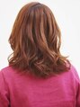 伸ばしかけなどですこし飽きてなーと思っている時にオススメします♪ 毛先にパーマをかけるとかわいさUPします♪ 斜めバング、センターパート、かき上げバング☆ カラーは、オレンジブラウンでツヤを出しています♪ [小岩]