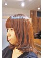 カラーはコーラルピンクで明るさキープしながらツヤ感UP。毛先の厚みを残しつつ、余計なボリュームを落としフォルムを整えて。パツンと切りそろえた前髪がポイント!