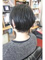 もともと円くなりやすい方でも少しエッジの効いたショートにも骨格補正カットでカタチをつくることができます。前髪はアシメ。耳にかけてもお洒落です♪