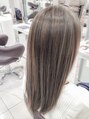 全体に激細ハイライト&ローライトを散りばめたカラースタイル。陰影が付くので巻いても巻かなくても可愛いスタイルです。ローライトはブラックを入れているので
