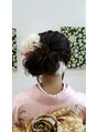 カチューシャ風に編み込みを入れそのままの延長でサイドからバックに編み込みを入れました。