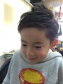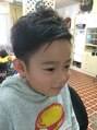 回りをぐるっと2ブロックで刈り上げ、トップはやや長めで動かしやすいようにカットしました。