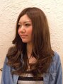 クールになりがちなセンターパートのロングを、ふんわりした毛先のカールで印象チェンジ。フォーマル、カジュアル、どのシーンでも馴染みやすいスタイル。