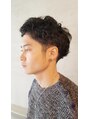 サイドはツーブロックでうしろの刈り上げとナチュラルにつなげ、柔らかいマッシュに全体的に強めに動きをだしてスタイリングで崩すスタイルです。前髪もあえて強めにかけてアップバングにも、下ろすこともできます!