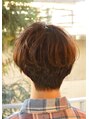 マッシュの重めのスタイルでもパーマで動きを出しせば、こんなニュアンスカールのスタイルもできます。ボーイッシュになりすぎずに、襟足すっきりの柔らかい質感のショートスタイルです。