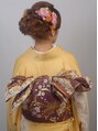 ザックリした編みこみに生花をあしらいイエローの振袖の色とコントラストがかわいい愛されるスタイル☆