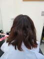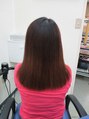 ゆるく大きいくせ毛の方ですが、他店で、縮毛かけられていますが、毛先も戻ってしまっているので、根元と中間~毛先にかけて、2段階で、液の強さを変えて、縮毛矯正をかけて、施術しております。