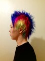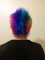 ブリーチで地毛の色素をしっかりと抜いてある髪の毛をベースに、虹をイメージして配色を考えました!どの角度から見ても色の見え方が変わるのでスタイリング剤で無造作に動かしても、タイトに寝かせても印象が変わり普段のスタイリングがより一層楽しめます☆