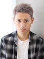 ハイトーンカラーのバングアップのベリーショートスタイル。ブリーチ後、透明感のあるシルバー、シベリアンアッシュをオン。カットはモヒカンスタイルで男らしさをプラスしました。外国人の様なスパイキースタイルです。