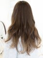 カットローレイヤーのセミロングベースです。毛先はスライドカットで軽さを出します。全体的に量感を減らし、前髪は目の上の長さで設定しました。カラー9トーンのシフォンベージュで毛先は12トーンの自然なグラデーションで柔らかさと動きをだしました。