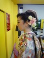 和装に合わせたヘアセット。やや低い位置でまとめ、落ち着いた印象のアップスタイルです。