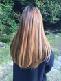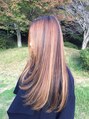 カット+縮毛矯正+カラーとこどころにローライトを入れてストレートでも動きのあるスタイルに!