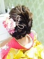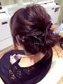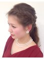 全体波ウェーブに巻いてからくるりんぱをして編み込みしてゆるくまとめたアレンジスタイルです!お天気悪くても崩れにくいので1日しっかりもちます!!