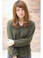 鎖骨下レングスにローレイヤーを入れ、毛先にワンカールで動きをプラスしAラインのシルエットに。ショートバングで全体に軽さをプラスし透明感とツヤのあるベージュ系カラーを☆どんな顔型でも似合わせます。好印象間違いなし!