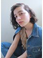 前髪から顔まわりにかけてのくせ毛風パーマがポイントの外国人風ボブヘア。カラーは暗めのアッシュ系、グレー系をチョイス。ショートからの伸ばしかけのスタイルにオススメです。スタイリング次第でモード、レトロ、ストリートなファッションでも活躍!