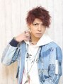 ツートンカラー ワインレッド センターパート メンズブリーチ