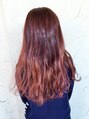 光によって髪色が違ってみえますが、レッド系のカラーで柔らかく!前回のグラデーションカラーを活かしてカラーしてあります。赤系でも奇抜になりすぎない女子力UPのカラーです。